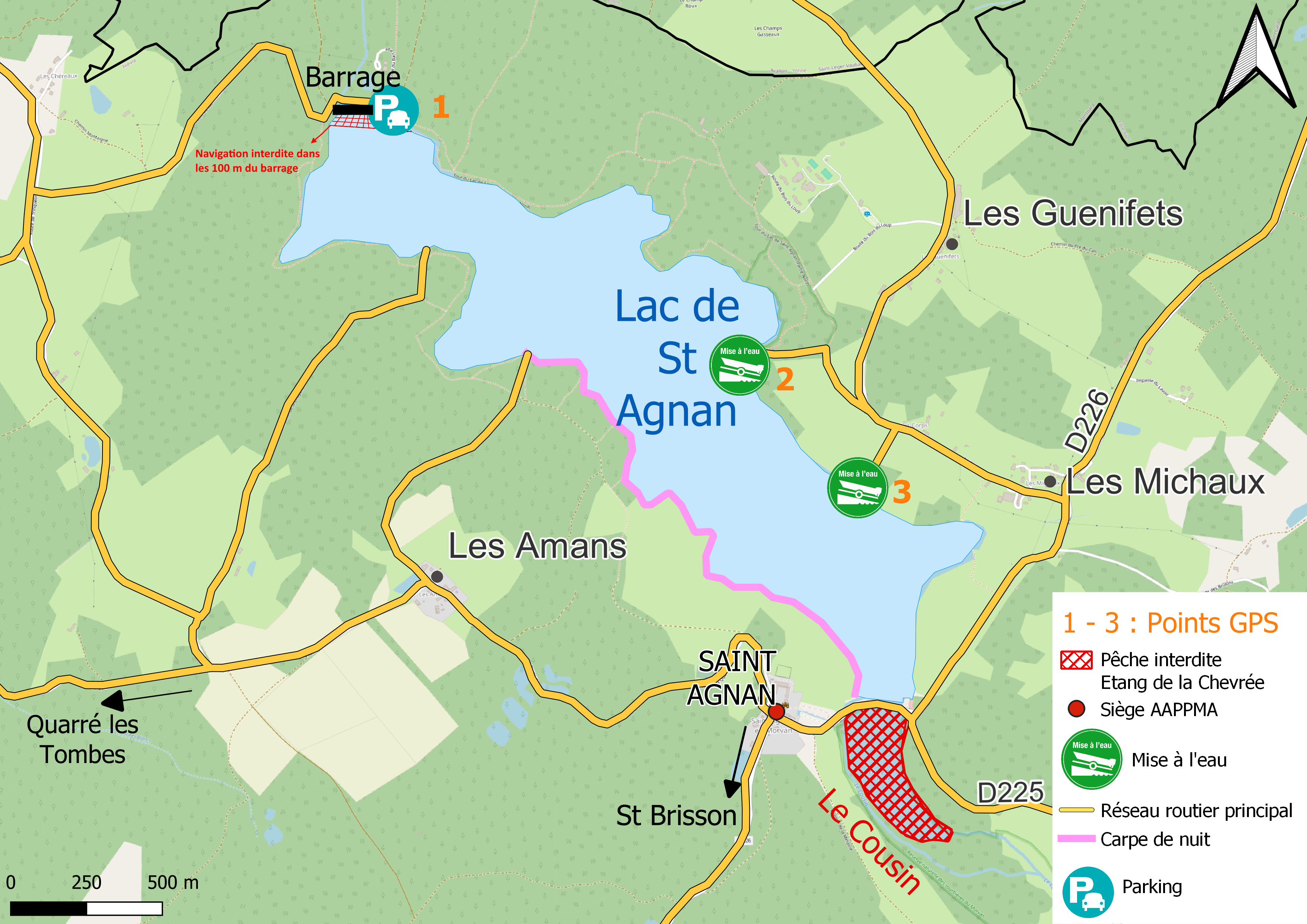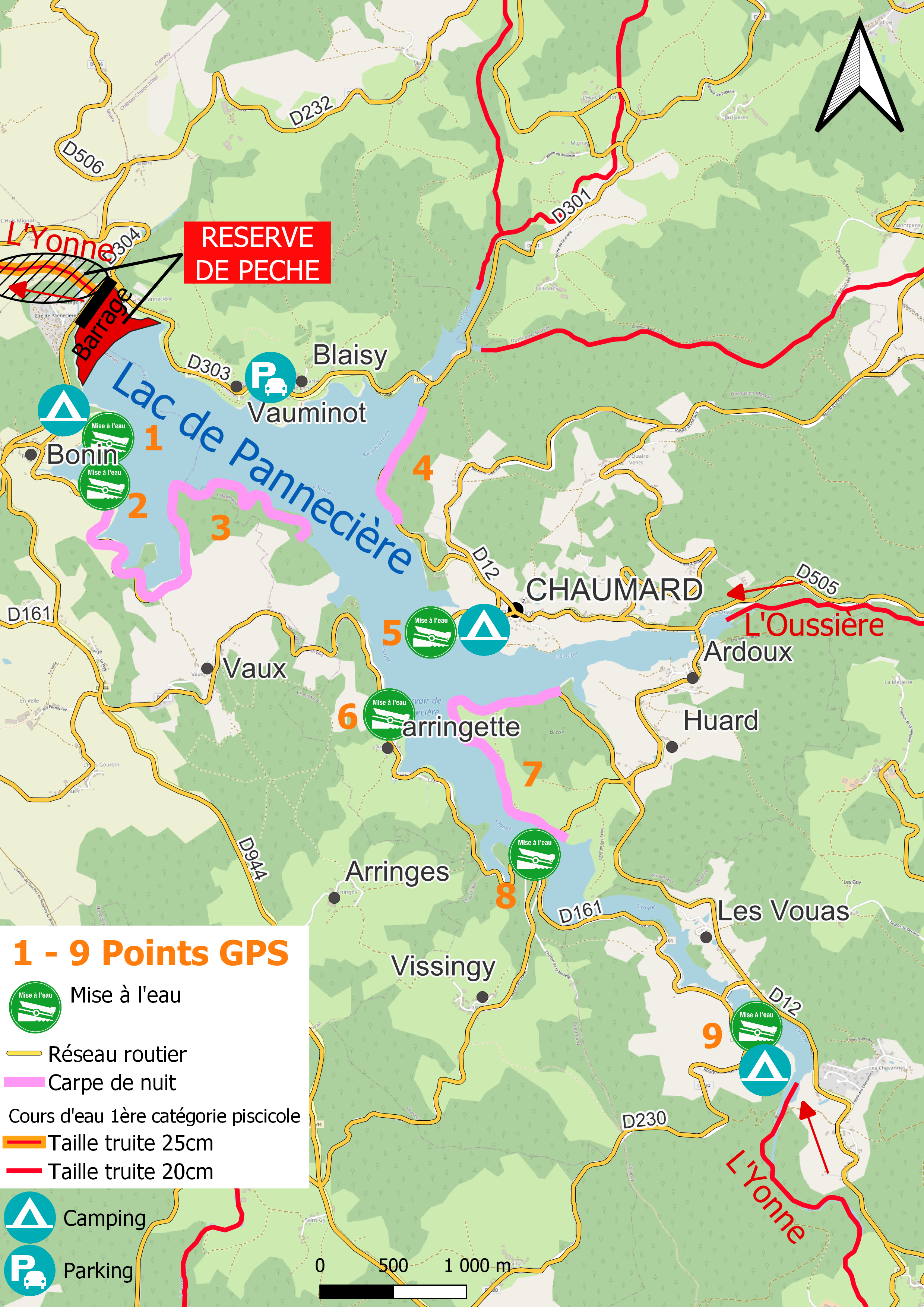 Point X (WGS84) Y (WGS84) 1 : Parking 47.3361603 4.0785000 2 : Mise à l'eau 47.3284807 4.0936000 3 : Mise à l'eau 47.32470182 4.09857276 |